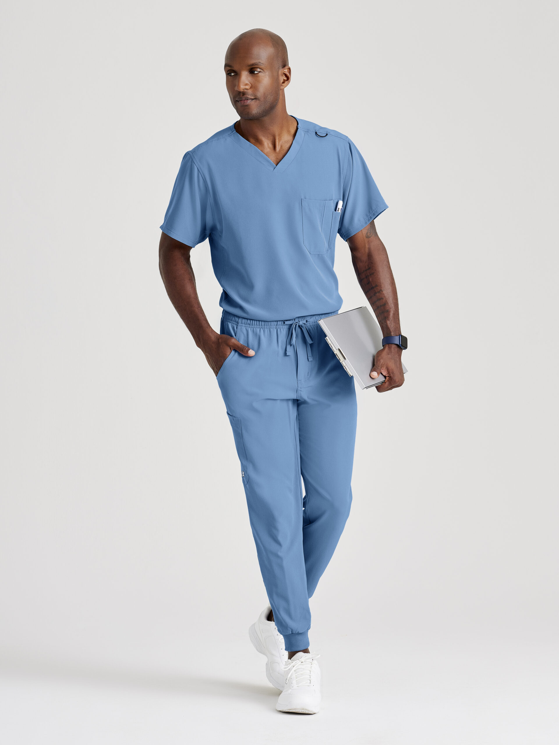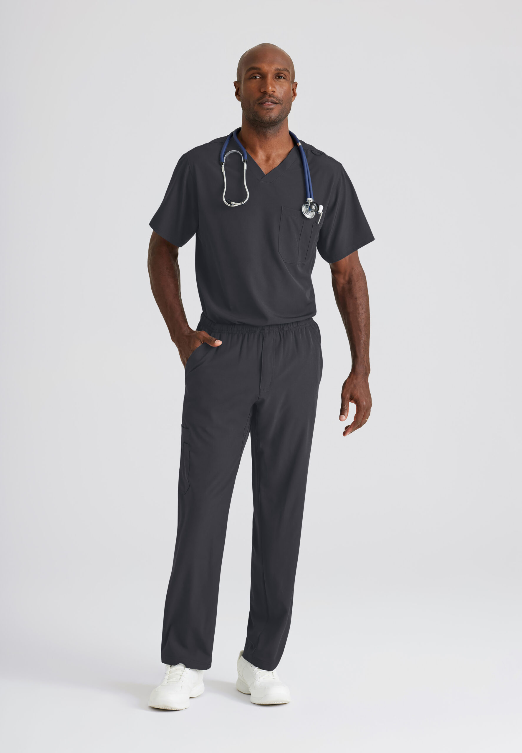 يحتوي البنطلون اربعة جيوب، جيبان اماميان وجيب جانبي جهة الفخذ مع جيب قلم وجب من الخلف