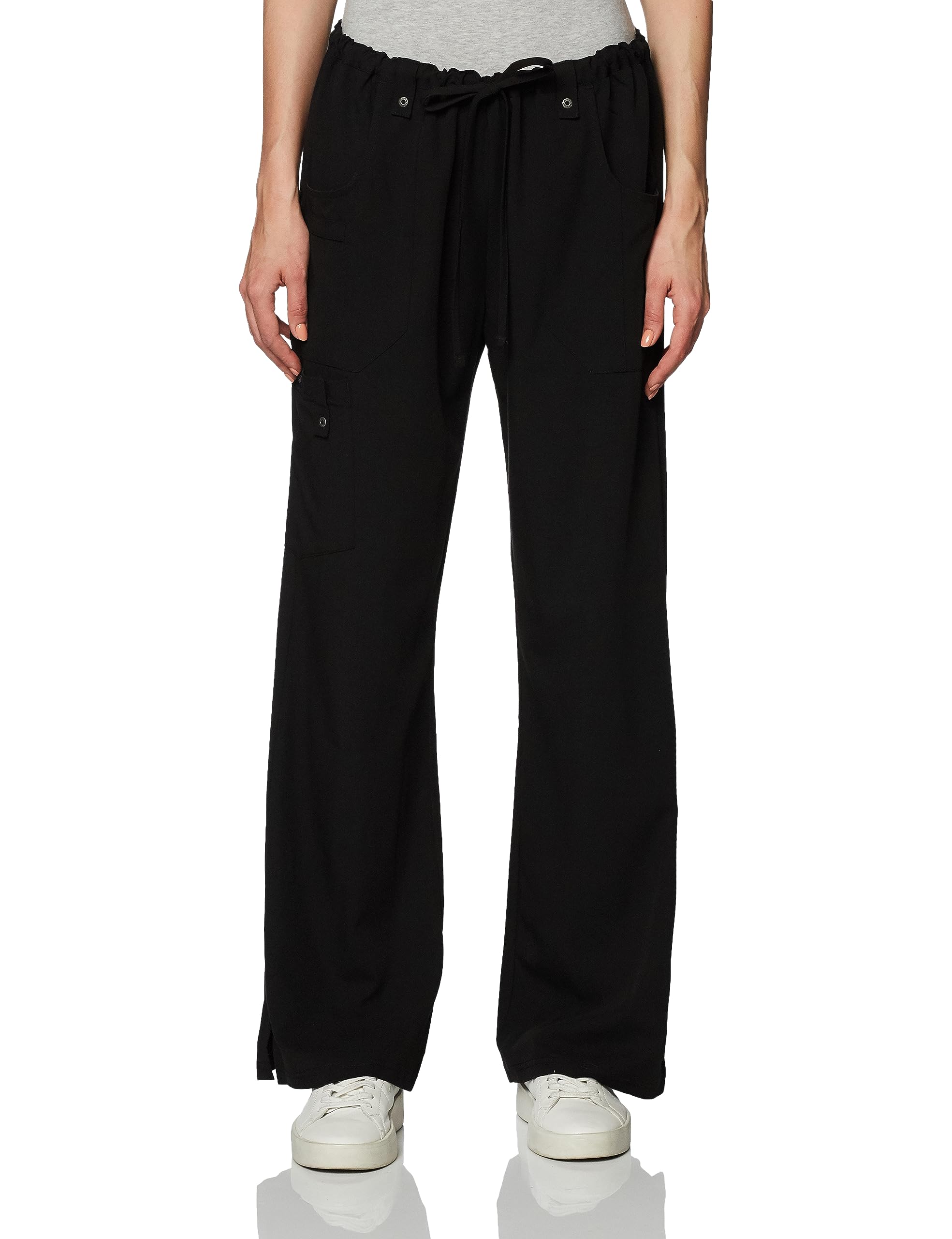 بنطال عصري بقصة مستقيمة، بخصر متوسط الارتفاع، يتميز بحزام خصر مرن مضلع مع رباط عملي.