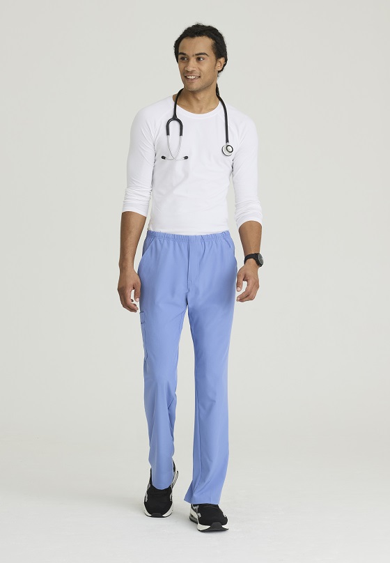 يحتوي البنطلون اربعة جيوب، جيبان اماميان وجيب جانبي جهة الفخذ مع جيب قلم وجب من الخلف